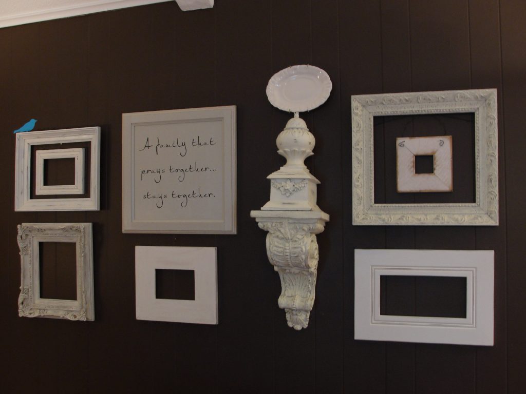 While we’re waiting, I’d like to introduce next week’s challenge…..”Frames, Art, and Wall Decor”. I am lovin’ this one already. I have an obscenely large collection of frames. I adore them because they are so versatile. I love to make my own art on the cheap. And as for wall decor….the skies the limit. You can have a lot of fun and really think outside the box. This is a great way to add a bit of your own unique personality into your decor. Your home should truly be a reflection of the people who live there, right? Here are some fun ideas I pulled from my own home.
