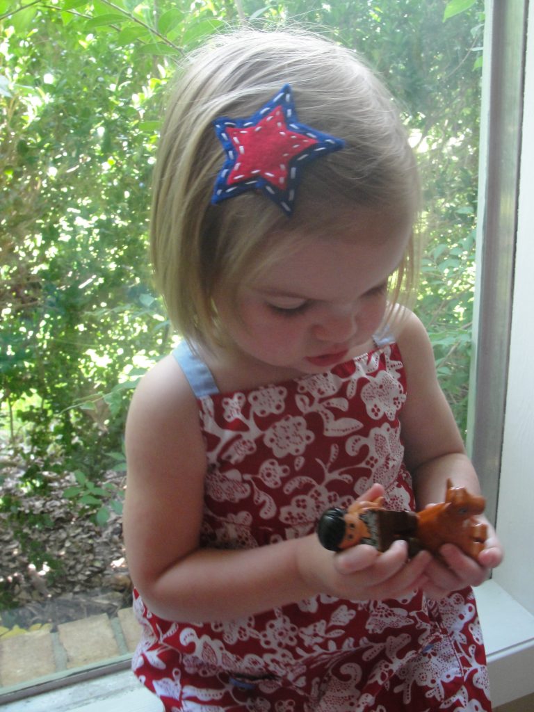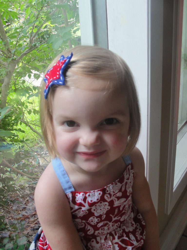 Thank you to everyone who linked up their projects this week. WOW…..y’all are really blowing us away with your creativity and imagination. Kari is hard at work looking through all the links and picking her favorites. While we wait, I’d like to introduce next week’s theme……”Red, White, and Blue”! Today I want to share with you a simple tutorial on how to make your very own adorable felt hair clips. I chose to go patriotic and whip some up for my girls to wear for the 4th of July.