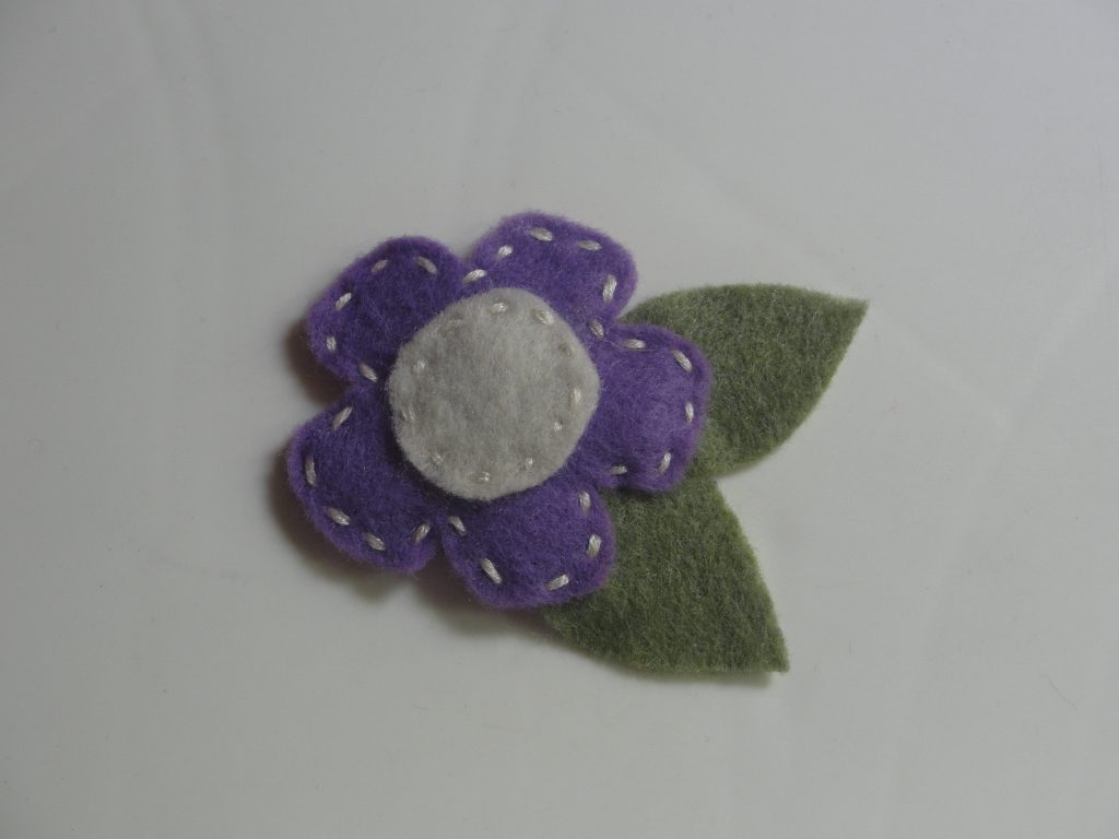 Now you’re going to need one more large star to finish it off. This one will go on the backside.Be sure to pin all three layers together so they won’t slide around. Now stitch around the outer edges of the large star. When you’re done, you’ll need to cut a small slit in the back to slide your clip in. Be careful to ONLY cut the back star….not all the way through to the front!