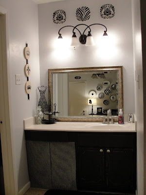 Amanda took her outdated bathroom and brought it back to life with paint, fabric and plates:
