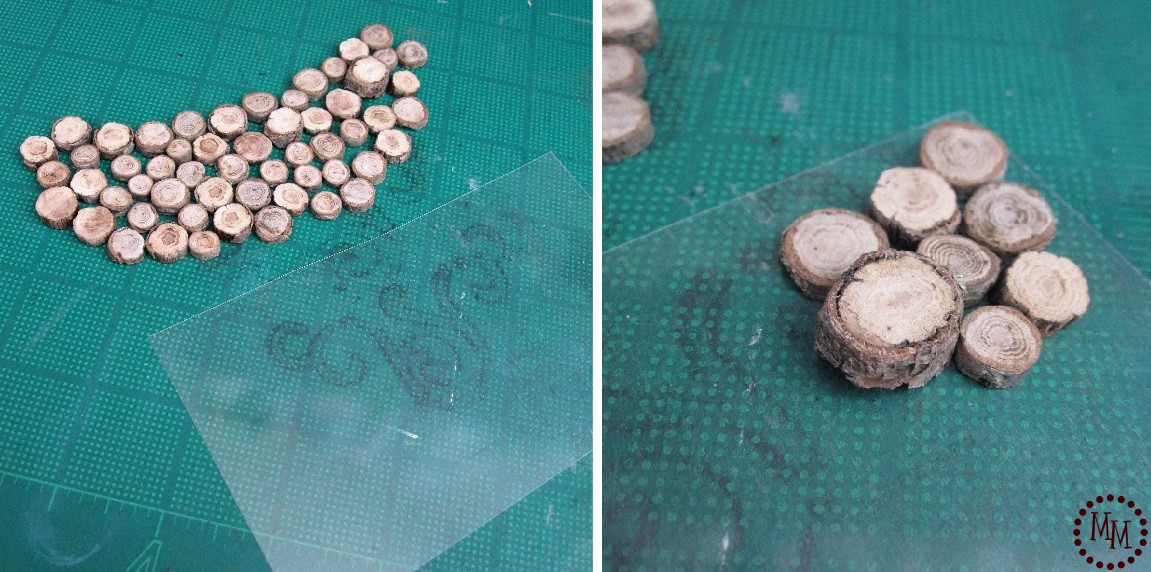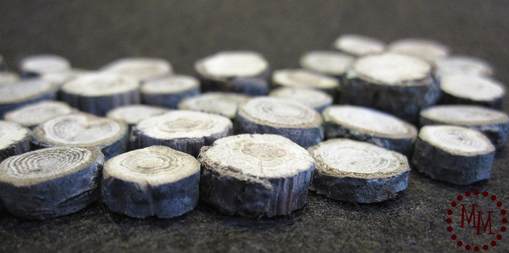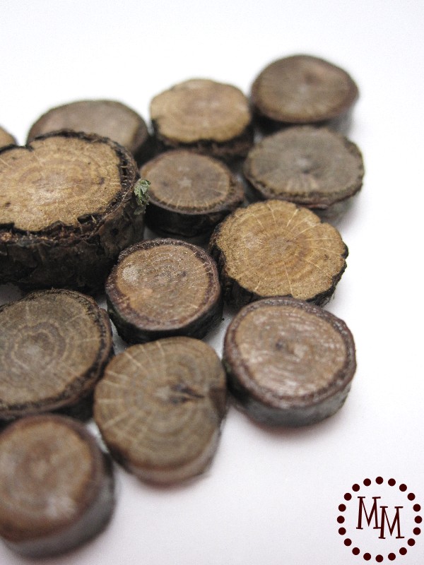 I used a cutting tool on my Dremel to cut the branches into disks of varying thickness.