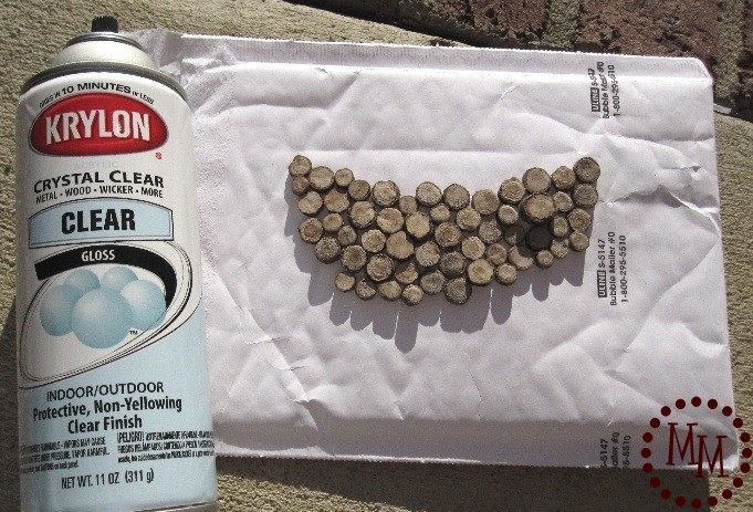 To prevent the wood disks from getting scratched or possibly falling apart in the future I gave them 3 good coats of Krylon Gloss clear spray paint.