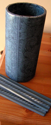 This is the inside cylinder for some industrial vinyl or some other material that I found at a local recycle shop. To make it into a container, I traced one end onto sturdy cardboard to make a bottom.