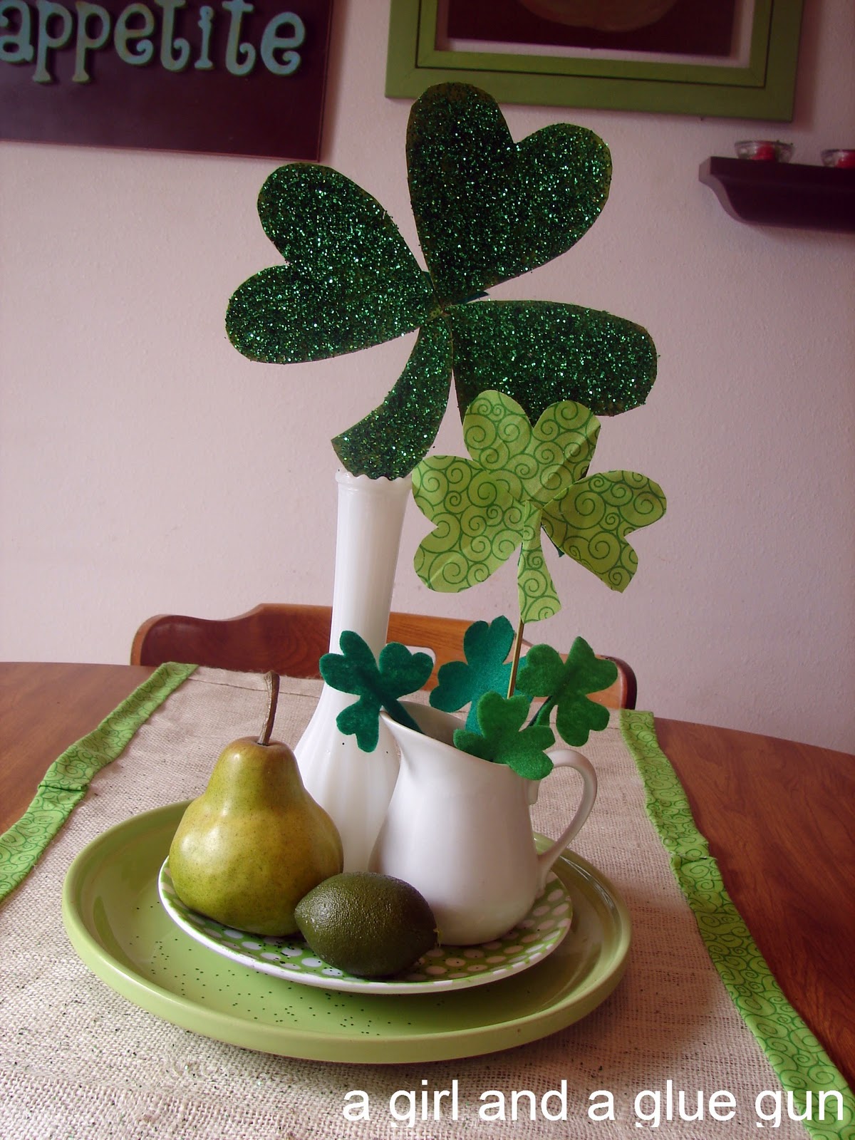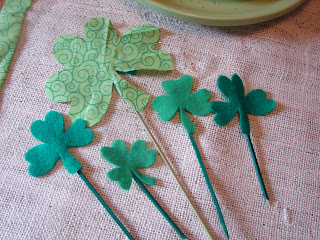I cut out a few other shamrocks…and hot glued them to sticks.