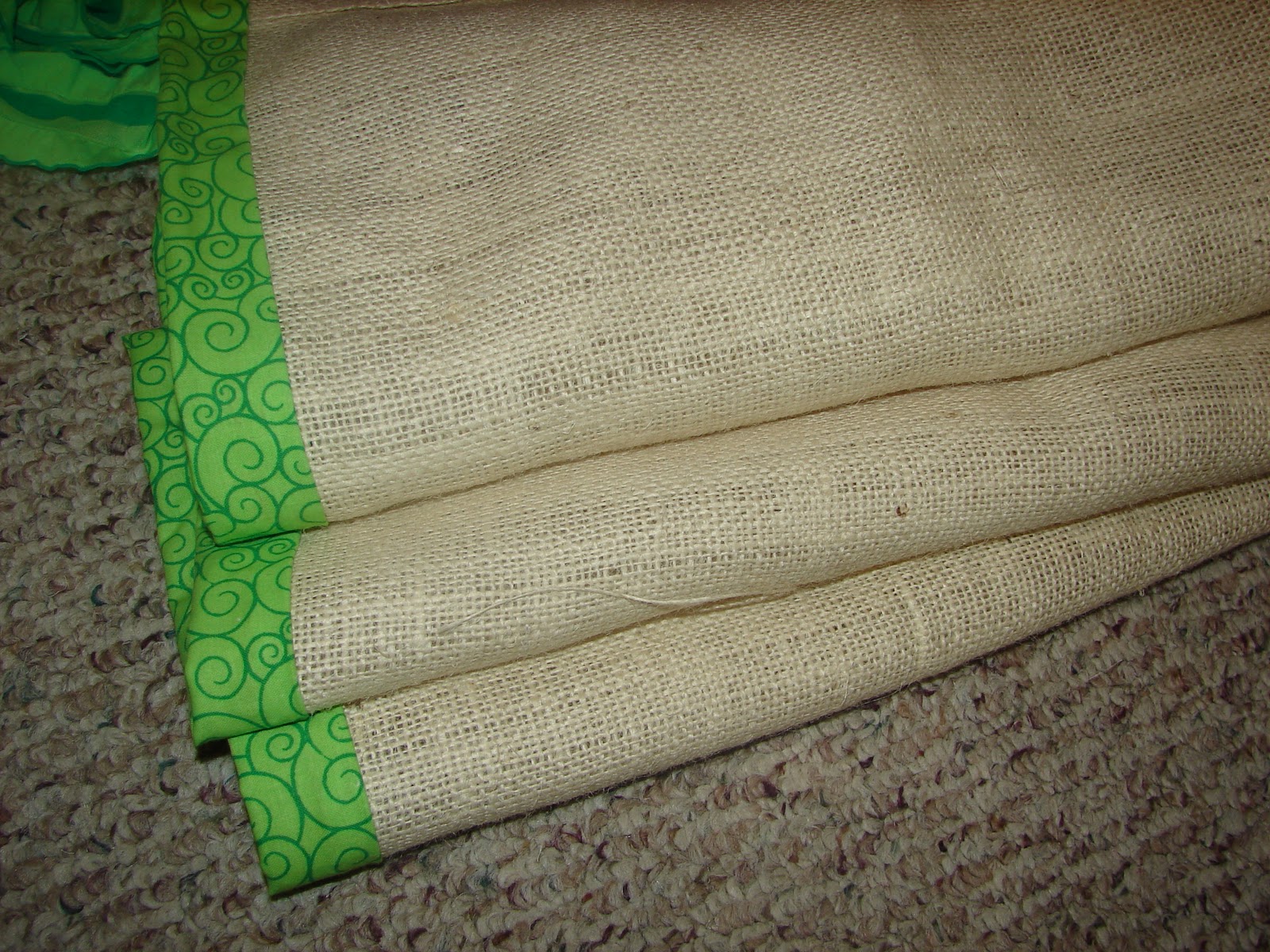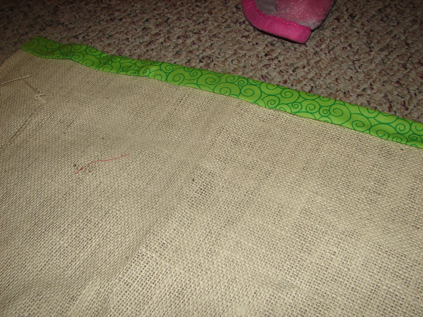 cut a rectangle…and hot glued it to the ends of each side of the burlap.