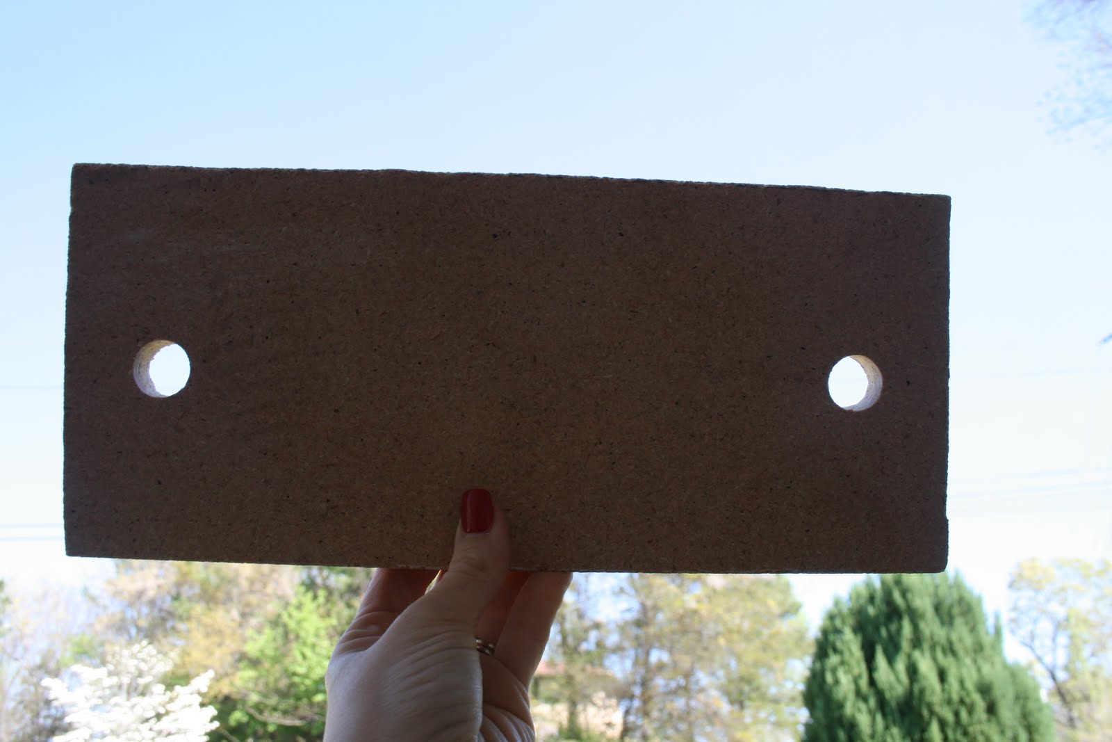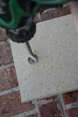 I very carefully measured out where I wanted my holes – and marked the spots with a pen and then went outside to drill. And by ‘very carefully’ I mean, I eyeballed it and used a piece of ribbon that was laying around!!