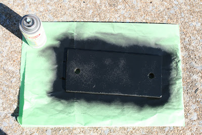 Next, I spray painted with my chalkboard paint. I did several coats, as this type of wood just soaked up the paint.