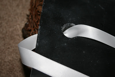Now, pick your next spot and thread the second piece of ribbon through, double knot and thread through second hole and finish with a bow.