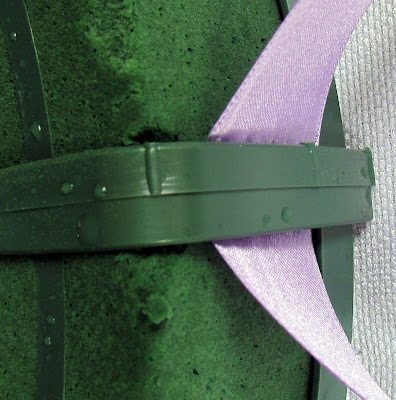 I slipped a ribbon through the plastic arm on the top of the wreath form…