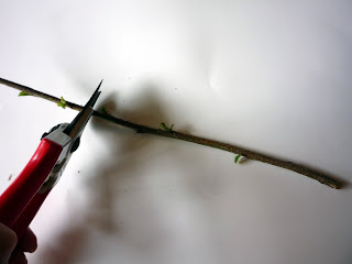 Cut your cherry blossom stems. Leave enough to create a taller arrangement out of your bark "vase." Weight the "vase" with some water and arrange the cherry blossoms.