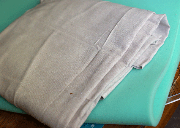 *2 pieces the length of my bench and a couple of inches wider than HALF my bench width…(I plan on overlapping the pad cover the same way I did with the pillow cover above).