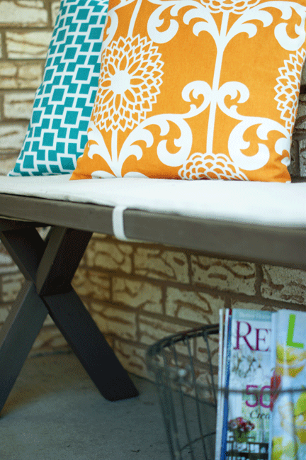 …(almost done…). From here I wrapped the straps around the bench & marked where the ends met…then I just added some hook & loop tape* to those places, stuck ’em together and done!