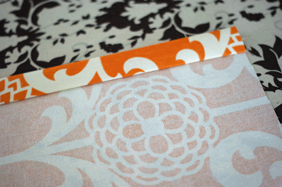 Tuck your straps inside the “sandwich” and pin the long ends of your pad cover. Sew down the sides, push out the corners & iron. You should see that your straps are hanging down from the cover, secured between the two layers of fabric.