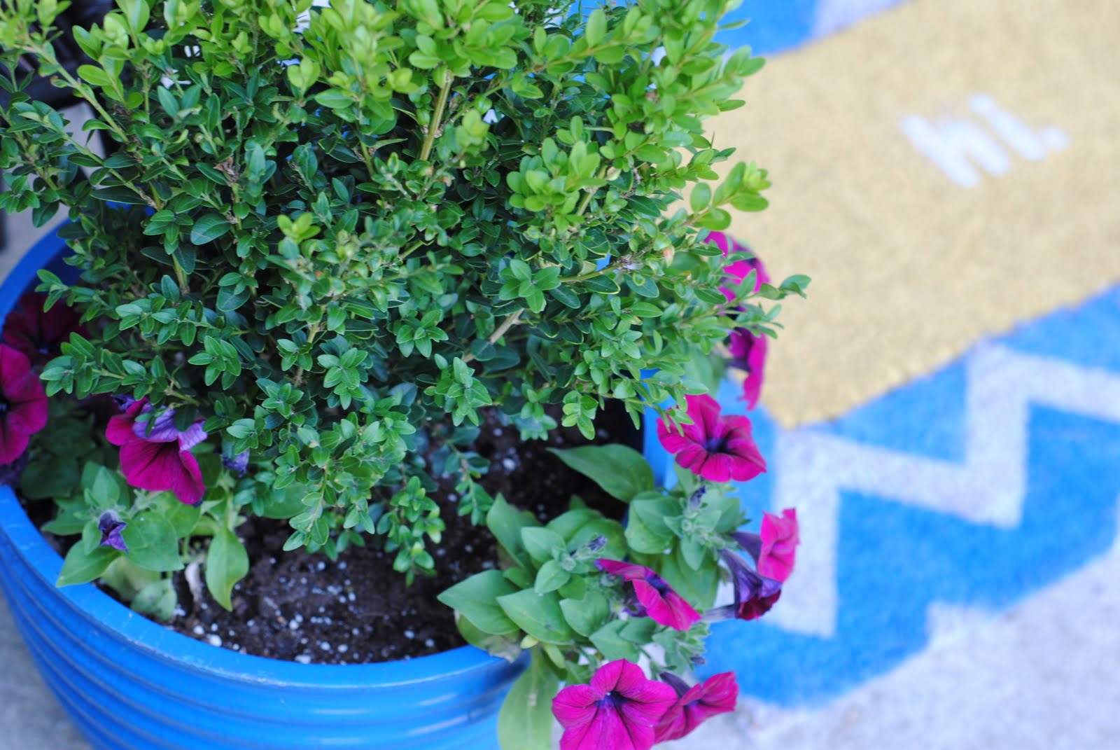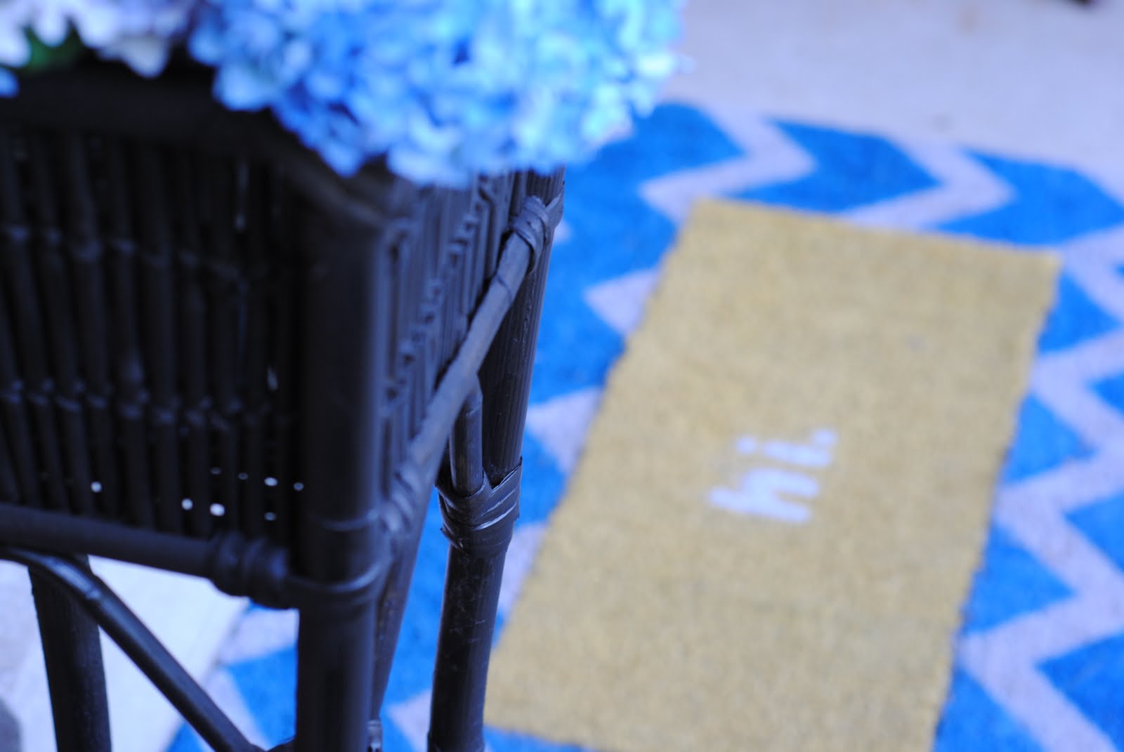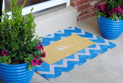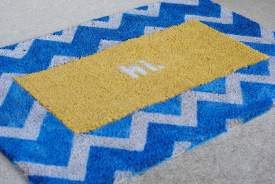 I know, I know… chevron is everywhere, but this is my very first time using it so I hope I get a free pass. 😉 Chevron-lovers can make this doormat as is, and all you chevron haters can use any pattern: stripes, dots, trellis, quatrefoil… you all are creative, I know figuring what pattern to use will not be an issue. As for the interchangeable part, the sky is the limit! I used different phrases, but you can use a favorite icon, a monogram, your house numbers… truly, if you can find it in a decal or make it using freezer paper you can do this.
