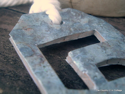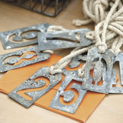 Hello all! So happy to be back here on the CSI project! My name is Angie from The Country Chic Cottage! I blog about home decor, vintage finds, creative crafts — all with a farmhouse feel! Y’all come on over anytime! One of my favorite things to do is to knock off the latest home decor catalog looks! So when the latest Ballard Designs catalog came I combed it cover to cover for ideas. And yep I came up with some knock offs! One of those was knocking off the Ballard numbered tags! I feel in love with the galvanized metal beauties! I can’t wait to teach you how to make your own!! Here is my version…