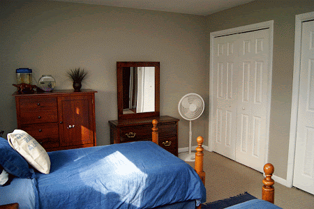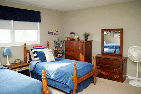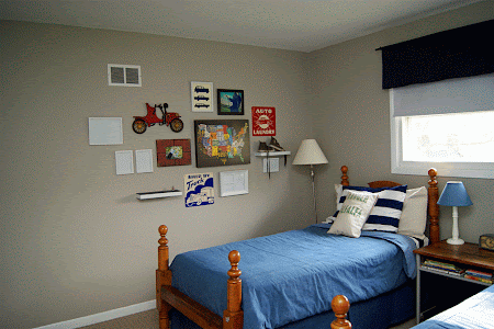 I moved both beds under the window…now we can access both closets without tripping over Tyler’s bed…oooh, just look at that wall color! I can’t get over it…