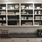 chalkboard backed open cabinets in this kitchen from Creatively Living Outside the Lines.