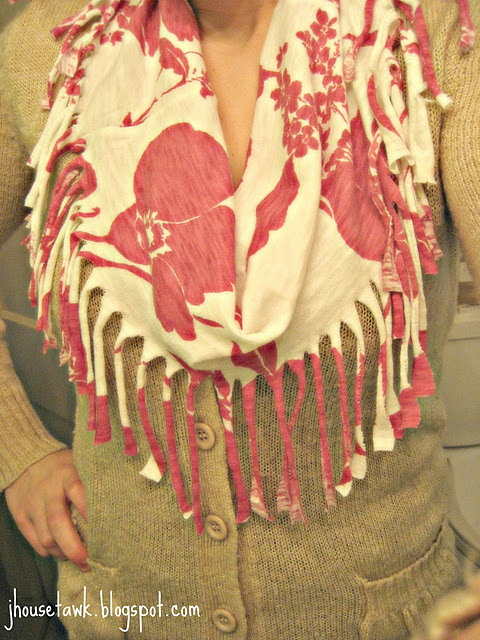 Jordan made this beautiful and trendy scarves out of old tank tops, once I’m done here I’m digging out all my old tanks!