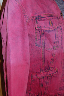 A couple of tips… The dye may not end up the same exact color as the bottle… my bottle was for cherry red and as you can see, it looks more hot pink! And then look at the different colors between the jacket and the scarf…. the dye will pick up different on different material types, so be prepared! If you need an exact color, do a test dye job, I am pretty flexible, so I am digging the colors and how it turned out.
