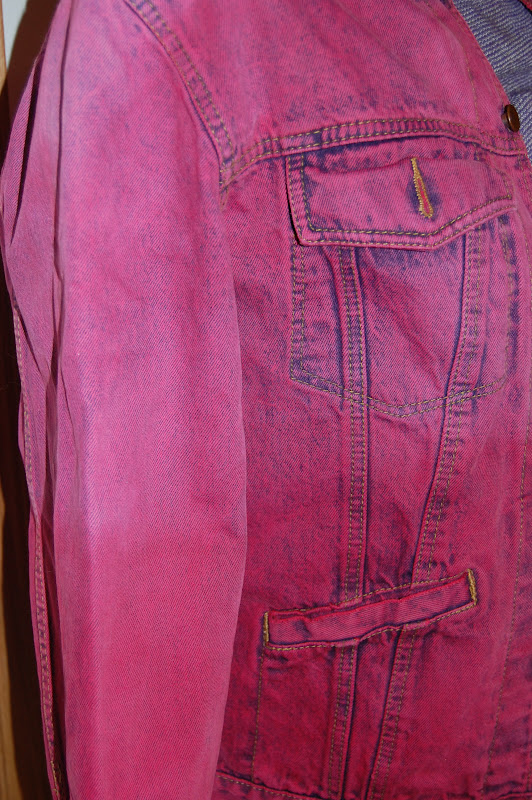 READ the directions on the bottle!!! With the ombre style of dying, you cannot dye in the washing machine, you need either a big tub, or I used the sink. If you have a porcelain sink, especially one with scratches in it, do NOT dye in it.. you will have a lasting memory and evidence of the dye job! I have a metal sink, so it worked perfect. I followed the directions, hot water, salt and stirred well to mix up the dye. With Ombre dying, you really want the graduated colors to come through, so you dye a little at a time..My first project was my old jean jacket.. I bought this jacket when I live in Germany in 1987! I loved it then, but it was screaming for a change..
