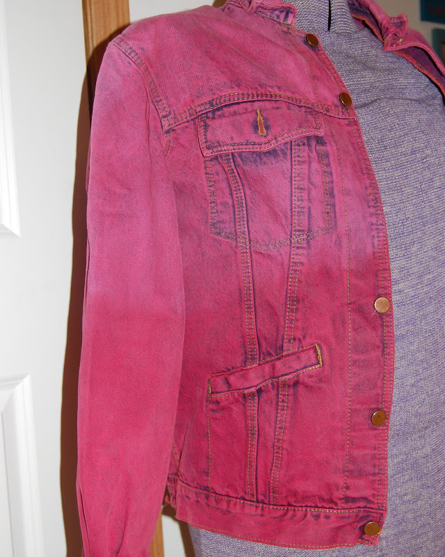 A couple of tips… The dye may not end up the same exact color as the bottle… my bottle was for cherry red and as you can see, it looks more hot pink! And then look at the different colors between the jacket and the scarf…. the dye will pick up different on different material types, so be prepared! If you need an exact color, do a test dye job, I am pretty flexible, so I am digging the colors and how it turned out.