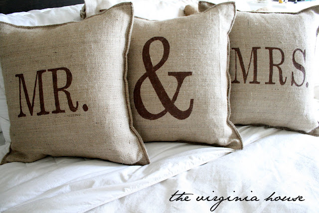 #26 Mr. & Mrs. Burlap Pillows from The Virginia House