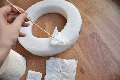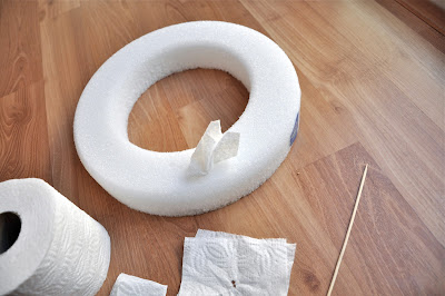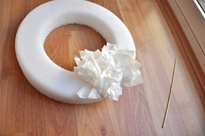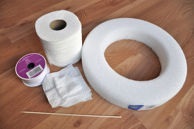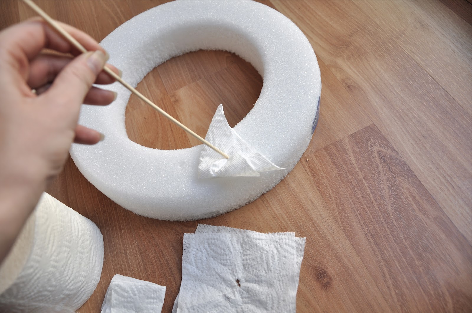 toilet paper squares, skewer, ribbon, & printable for background {not shown}