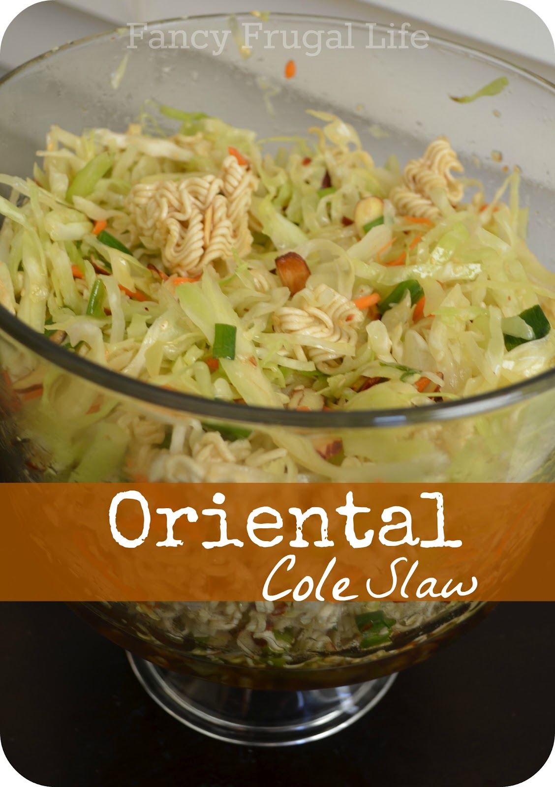 My favorite salad to bring to pot lucks and BBQs is this yummy Oriental Coleslaw recipe I received from my sweet SIL Cory via Cooks.com. The toasted sesame seeds and almonds give it great flavor, and the crunchy ramen noodles are delish! Here is the pretty recipe card I made especially for you. Because you will get asked for the recipe…So just right click and save to your computer. Then print it on a 4×6 or 5×7 card and bring it with you!