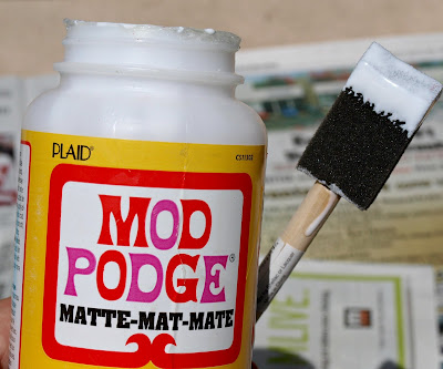 The Mod Podge will look like white glue when wet, but dries to a perfectly glossy finish.