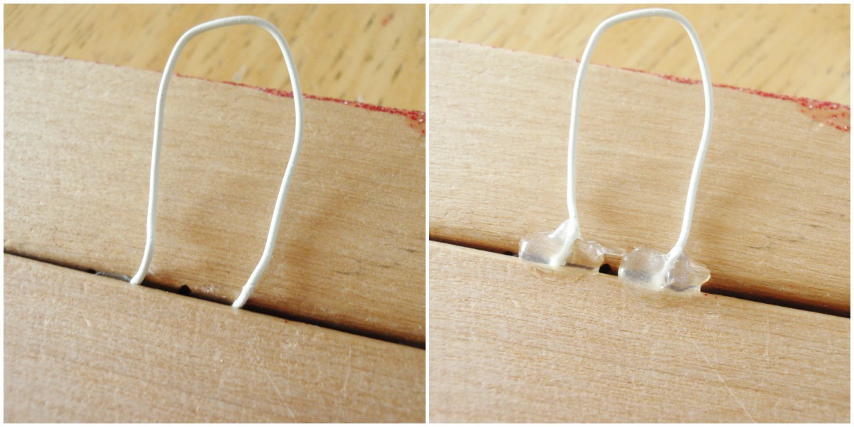 Once glued, stick the wire in and secure it with hot glue…