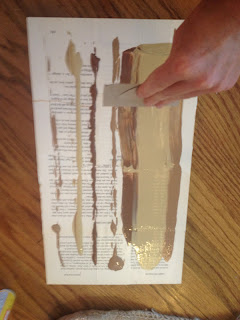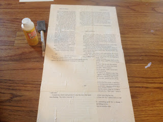 I started by tearing out several pages from my old book and Mod Podging them to my scrap wood.