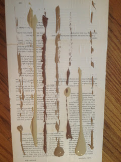 Once it was dry, I added several colors of brown and tan paint in long drips across the top of the book pages.