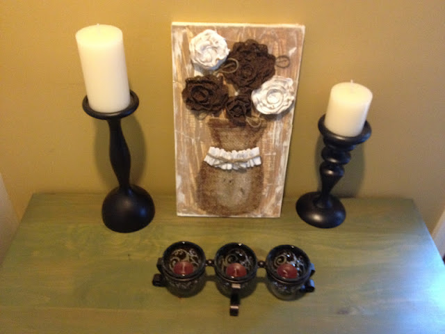 I really hope my hubby appreciates the amount of burns that I have endured in creating this one of a kind artwork for our home. Seriously, I think I have singed off my fingerprints on this one!