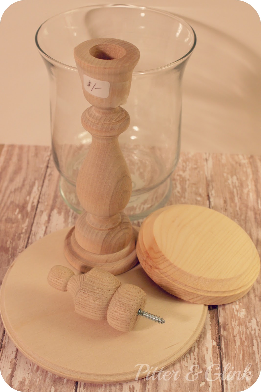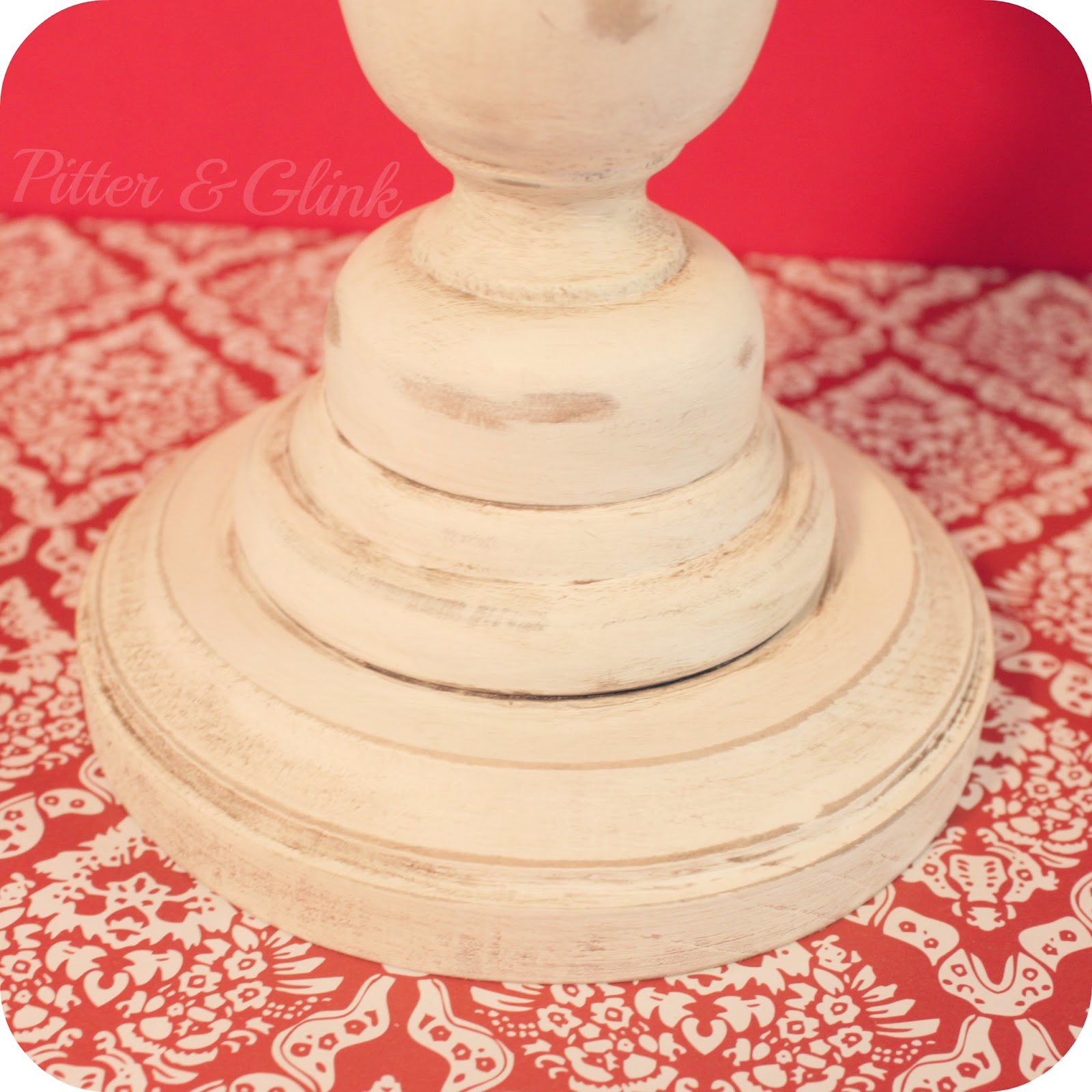Once everything is dry, use an industrial strength adhesive to adhere the finial to the top of the glass candle holder. (I know the finial is not painted in this photo. Please ignore that…) This creates your cloche.