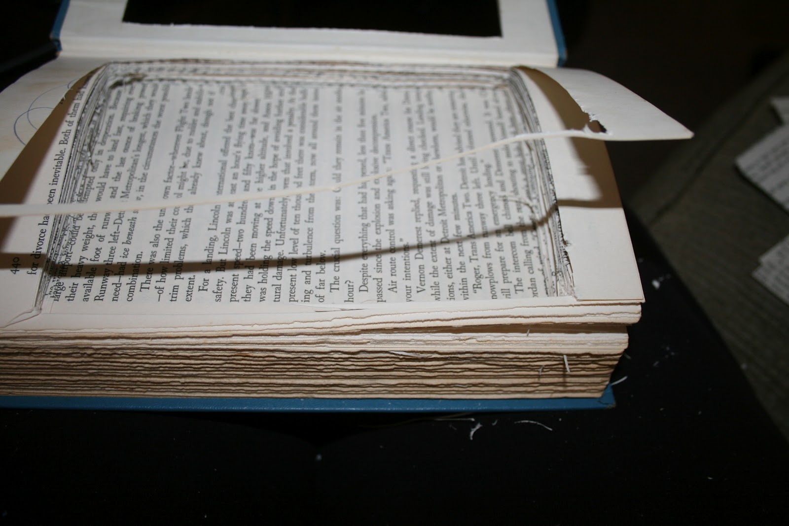 So, now the hard part. I used my craft knife, with the remaining back cover serving as a template, to start cutting away the pages inside.