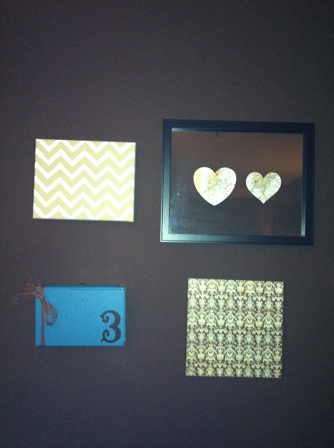 Here’s a board I’ve been chipping away at lately: Makeover – Foyer. We have aAL large foyer but there’s no real separation from the living area, except for the change in flooring, which is an old ugly tile. I’ve been really board with our foyer for some time. I finally spent a day and painted one wall in a darker color, as an accent to the rest of the living area. I slowly added some art work (most inspired by Pinterest, of course) but just didn’t feel like it was finished.