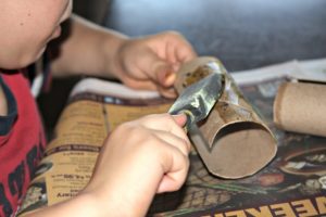 Cut the rolls down the middle and measure how far up you want it to go on your child’s arm.