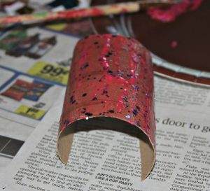 Step back and let the kids paint them with the glitter paint. This was the fun part.