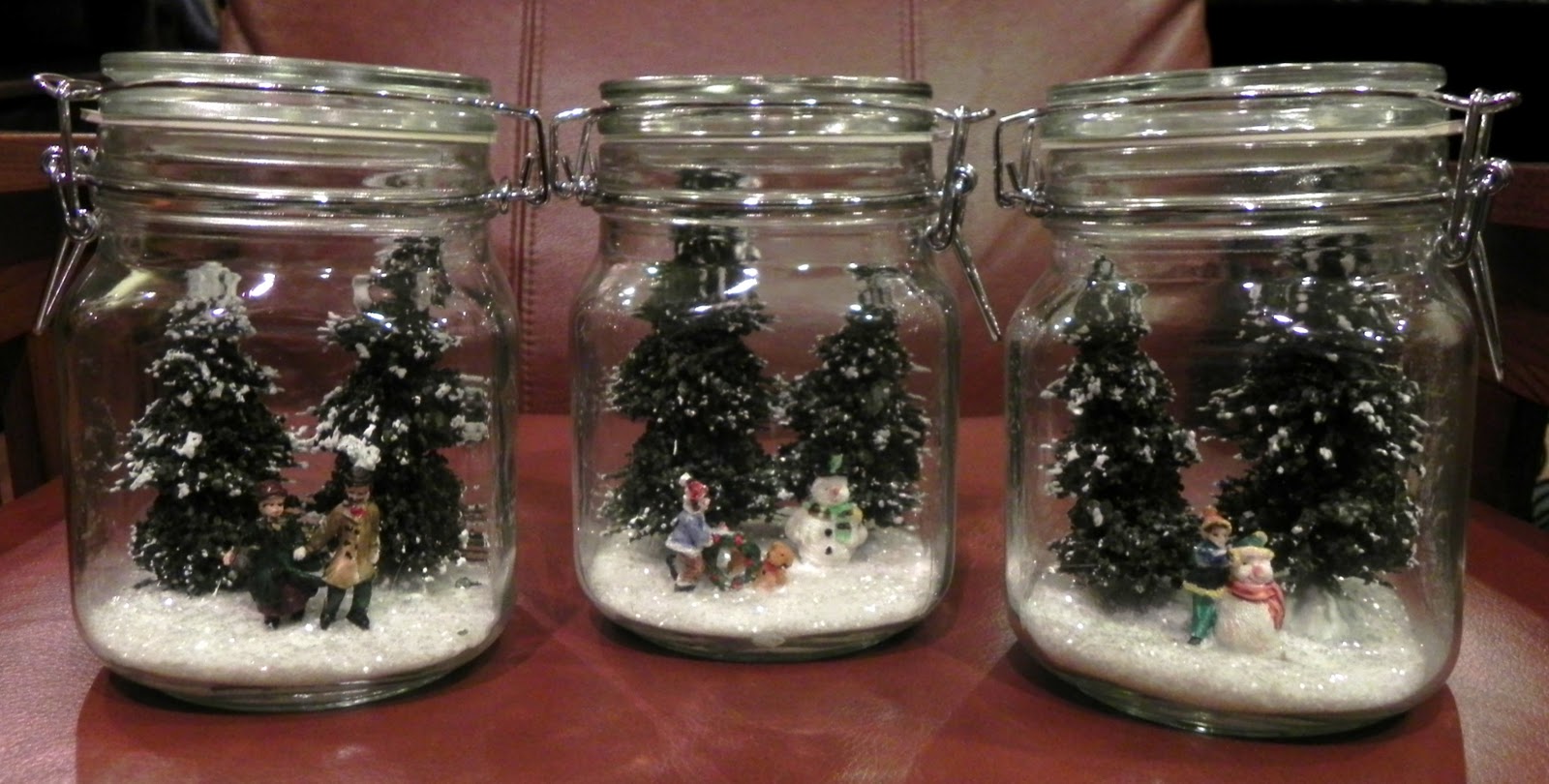 These little snow scenes are just so sweet! I love how easy and inexpensive they look to make! And versatile too! These would be great hostess gifts for your holiday parties this year!