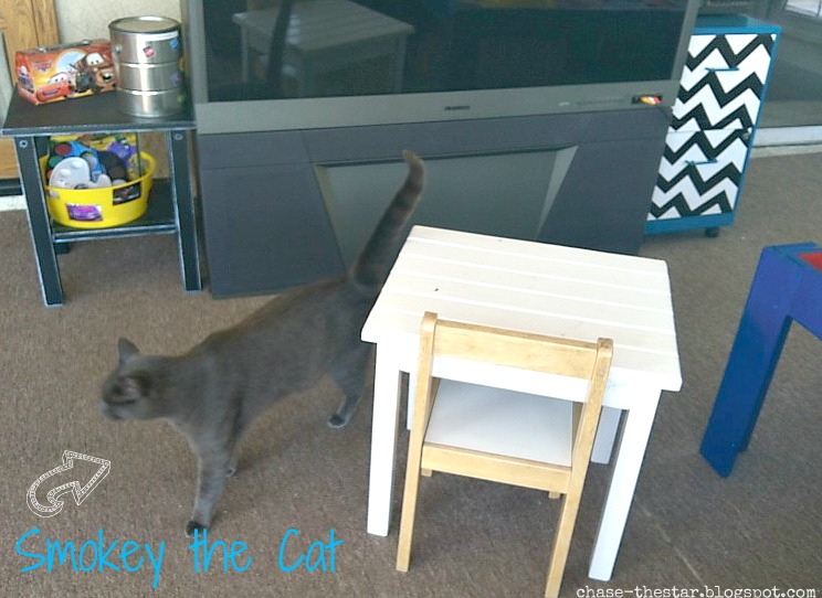 I love chalkboard paint and have used it on other projects like the dinette I turned into a kid’s game table, and wine bottle centerpiece for my dining room, and more!