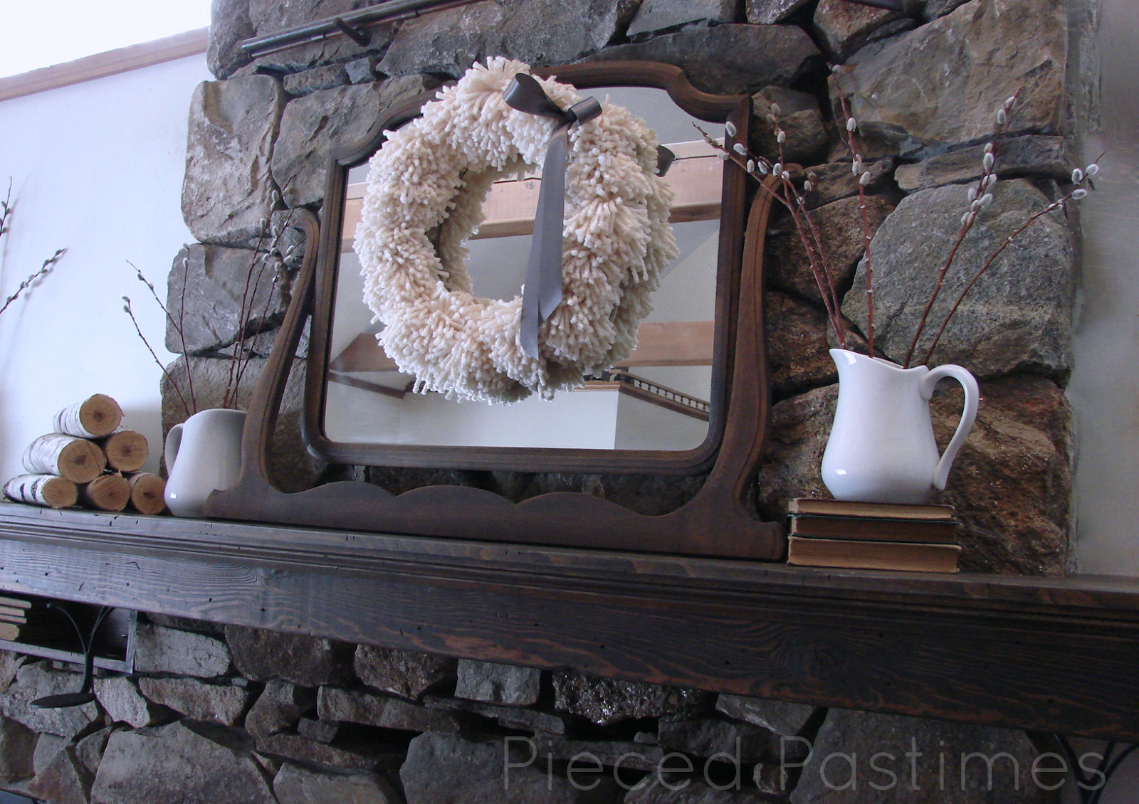 This mantel really charmed me because it was so cozy and inviting, ready to cuddle up around and be warm. I also love using natural elements in decor.
