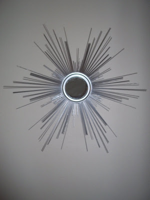 The whole room is cute! I love this sunburst mirror.