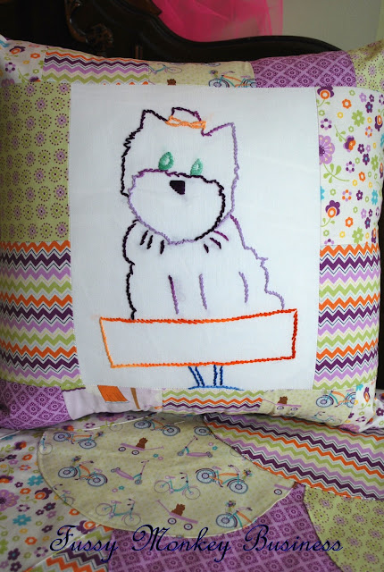 #3 Hand Embroidered Pillow from Fussy Monkey Business