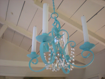 * Chandeliers make every room fantastic- Yes, every room. My dream is to have one in my closet. The on the set is blue. Want to DIY it for your space? Of course, you do!